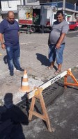 18/03/2019 - Fernando Lourenço fiscaliza conserto de grade de esgoto na rua Mundo Novo